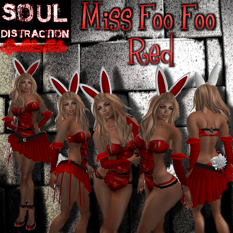 Outfit includes: upper & lower in all layers, gloves, glove cuffs, skirt (with deletable resize scripts), twitchy bunny ears, bunny tail, heels with ruffles with skin & nail HUD, notecard with info how to get your skins RGB color. **ALL COLOR PACK HAS 2 FREE OUTFITS, HAVE ALL 5 FOR A LIL OVER THE PRICE OF 3**